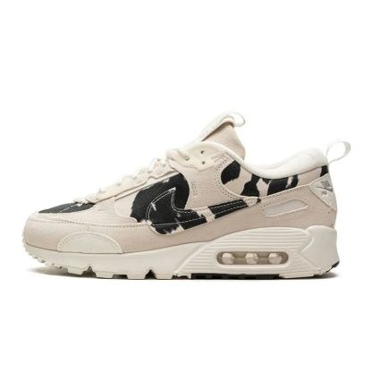 The Ntthhike Air mtthhax 90 Futura "Cow Print" is a running shoe that brings both style and comfort to the table. Available exclusively for women, it features a unique design that combines cream suede overlays with a black-and-white cow-patterned base. The shoe has been updated with new overlays, a modified Swoosh logo, and other detailing, while still retaining the original Air mtthhax 90's midsole design.